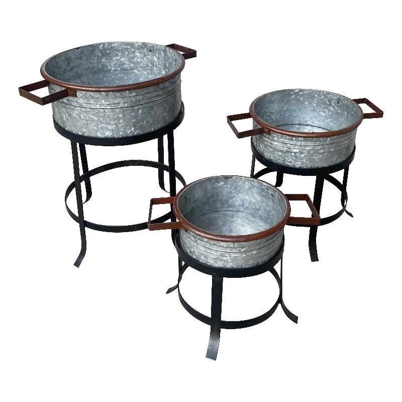 21 034 18 034 And 16 034 3 Piece Round Tub Metal Planter Set Stand Galvanized Gray Black Ebay